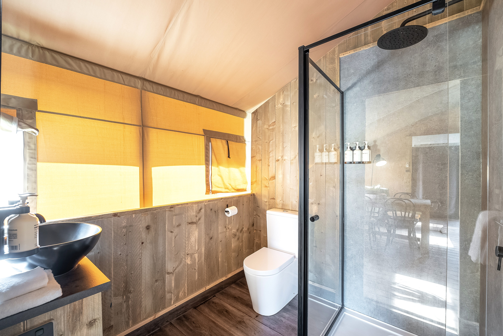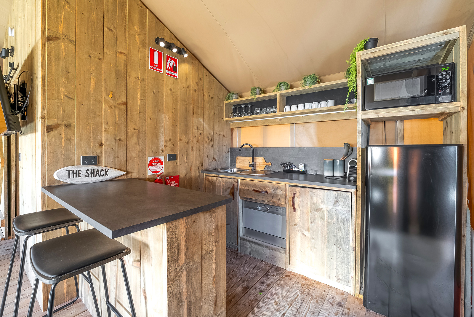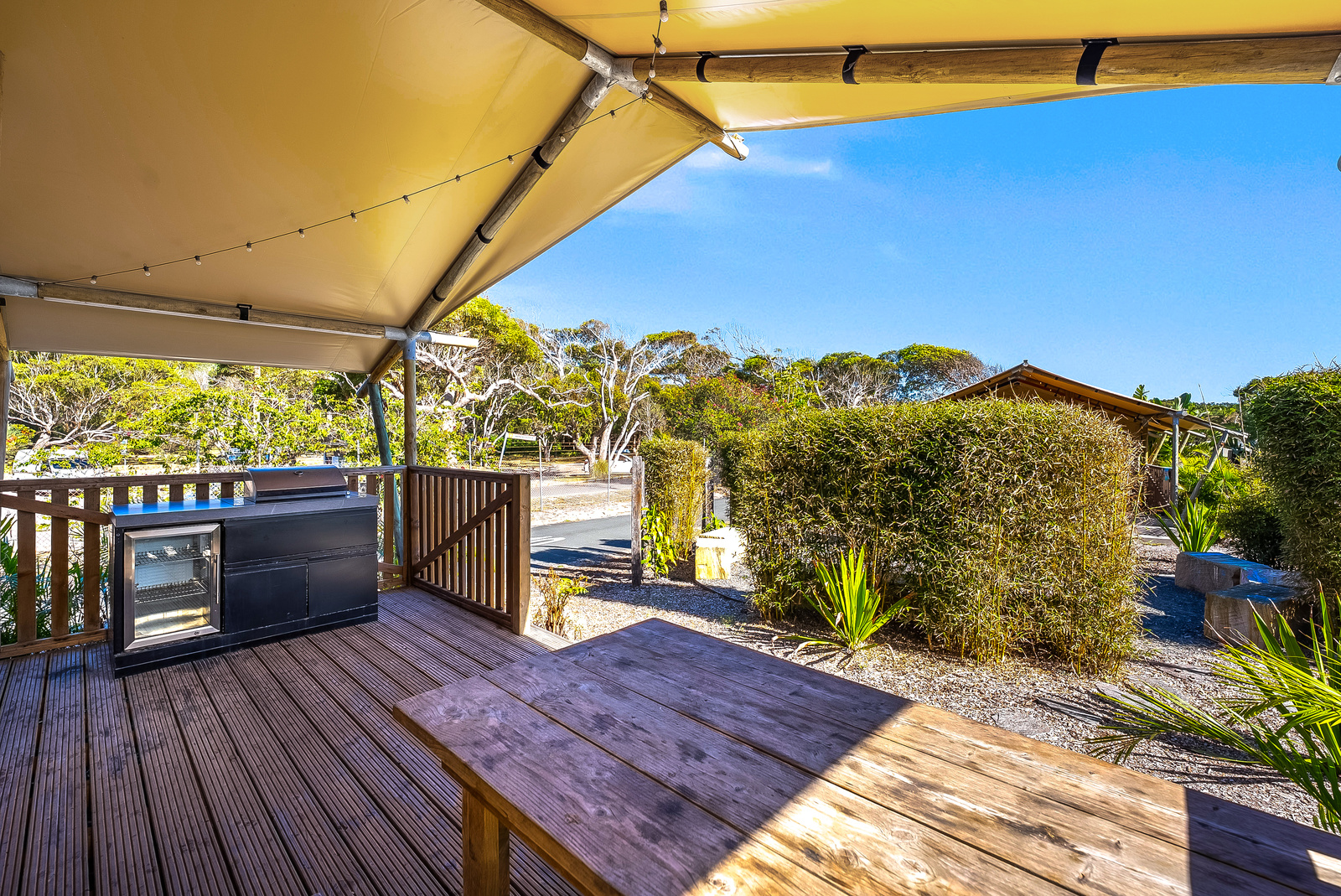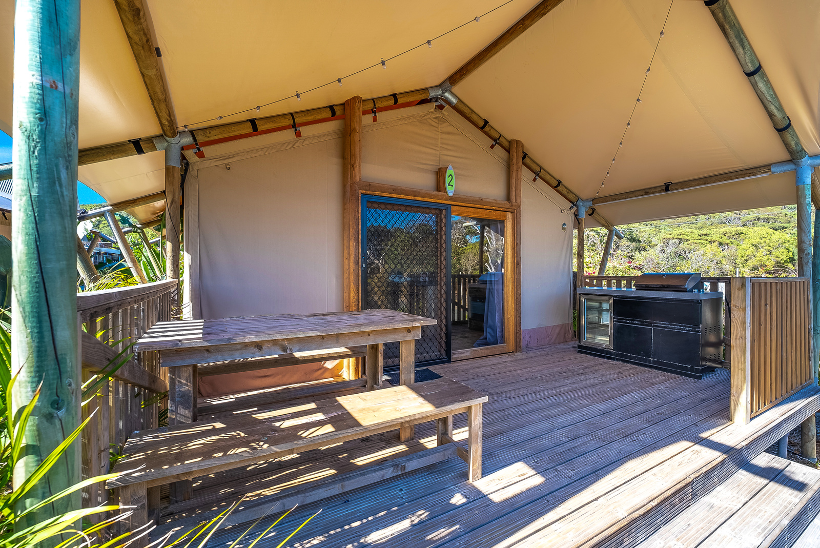 Your glamping experience will be unmatched! These Luxury Family Tents sleep up to six guests with a spacious and climate-controlled interior including a queen bed and two bunks, as well as an ensuite bathroom, living area and kitchen, plus a large private deck with BBQ.