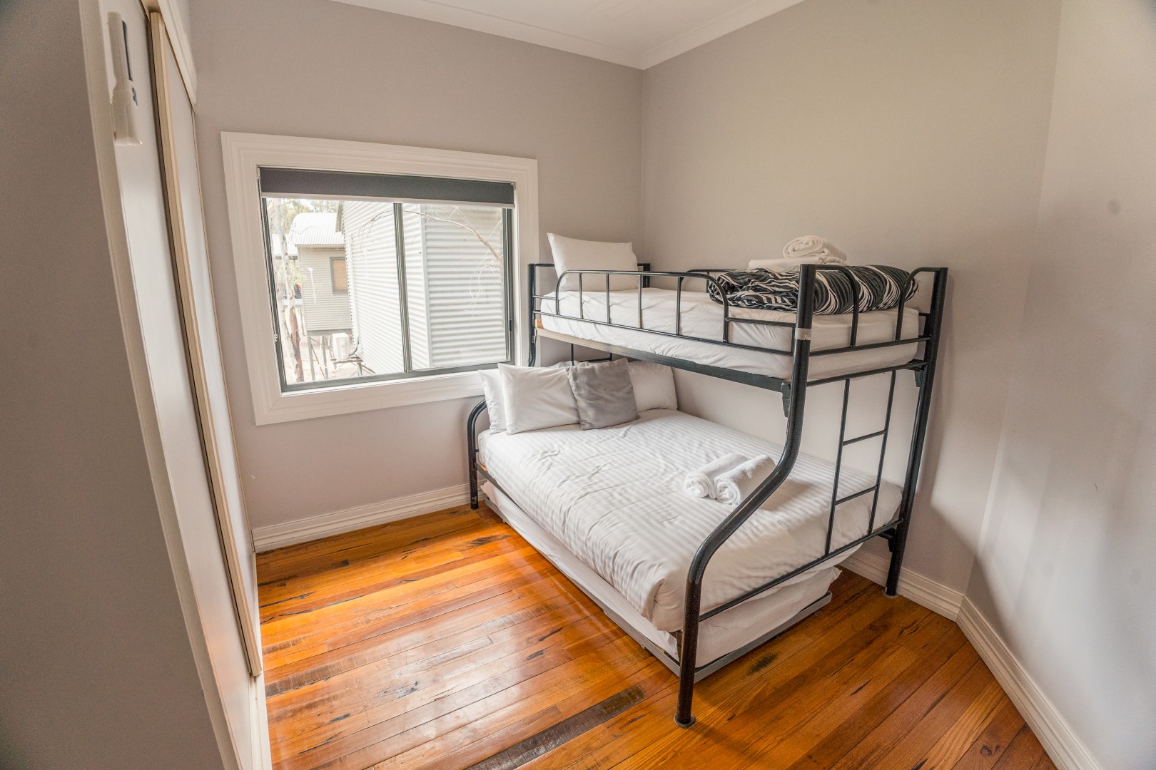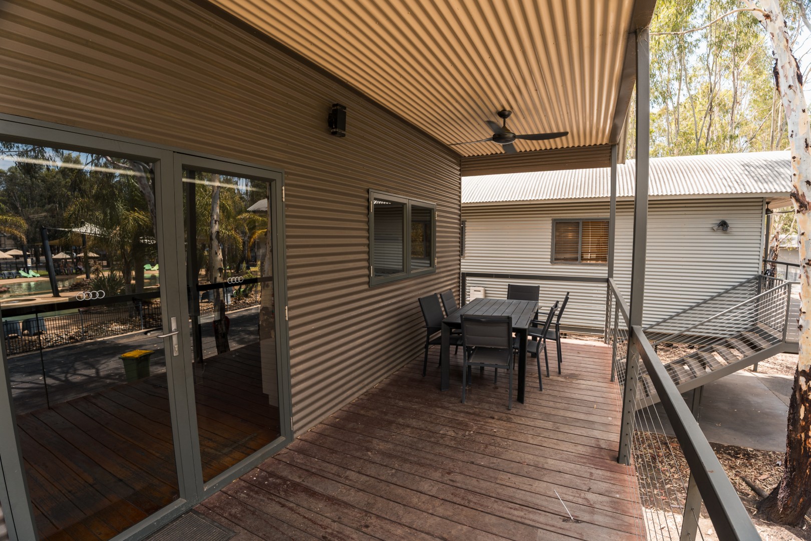 These luxury 3 bedroom Superior Villas are stilted to give a magnificent view of the surrounding bushland. They are fully self-contained with two bathrooms. The master bedroom has a queen bed with ensuite, and the second bedroom has a queen bed, the third bedroom has two sets of bunks. The living/dining/kitchen area is very large boasting full kitchen and laundry area. The villa is fitted with modern appliances and furniture and has polished floorboards throughout. This villa can accommodate up to eight people.