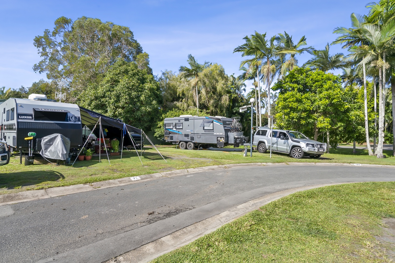 Bring your large caravan or motorhome along and enjoy a stay amongst lush palms and green grass on our Large Powered Sites, and enjoy access to the park's amenities and facilities. All large sites are suitable for vans and buses over 9m.