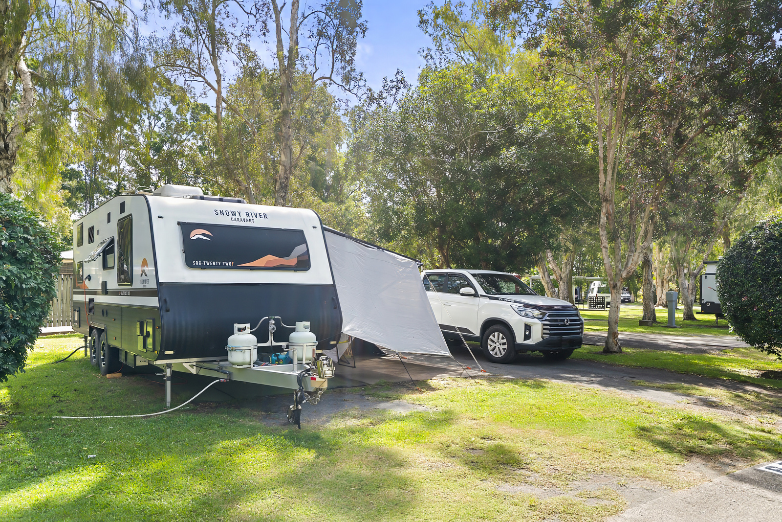 Experience the outdoors with modern convenience and extra space. Our Large Powered Sites feature a beautifully maintained grass site with annex pad, suitable for caravans, campervans and motorhomes. The sites are centrally located within the park close by to all the park facilities.