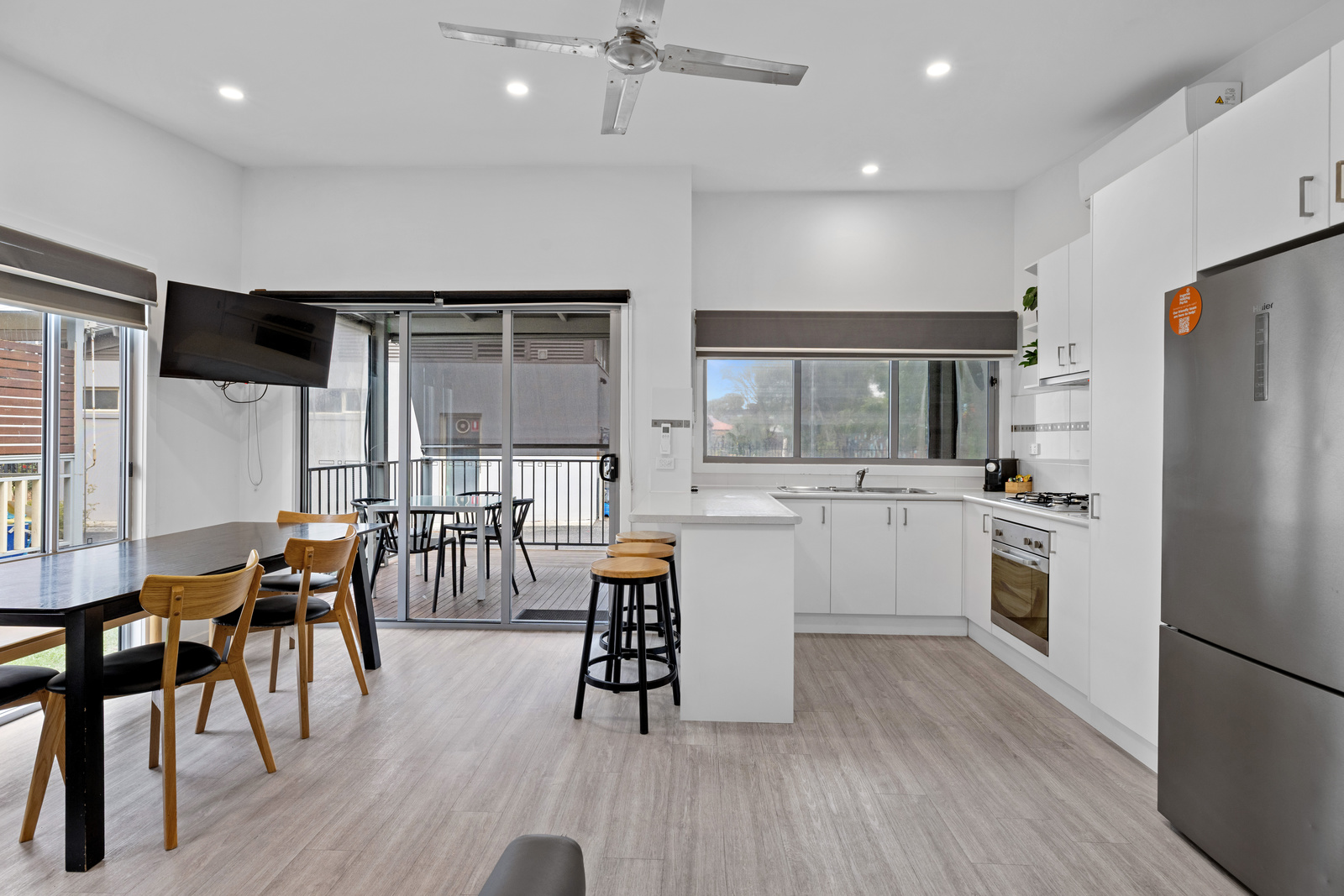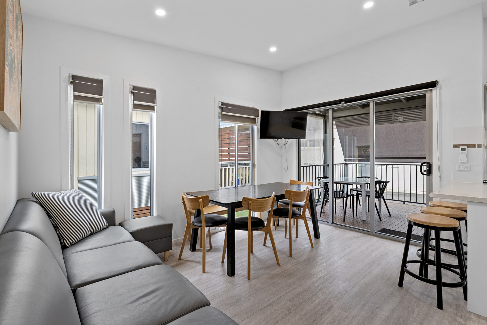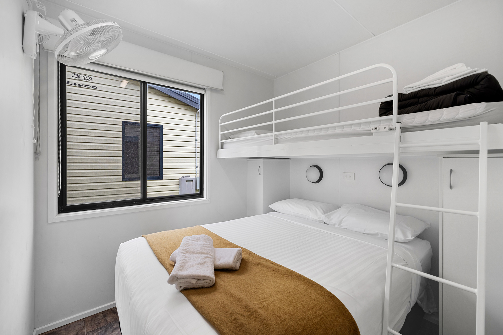 These 3 Bedroom Villas sleep up to seven guests with a queen bed in the main bedroom, a double bed with single upper bunk in the second bedroom and a bunk in the third bedroom, as well as a bathroom, living area, kitchen and private deck with BBQ.