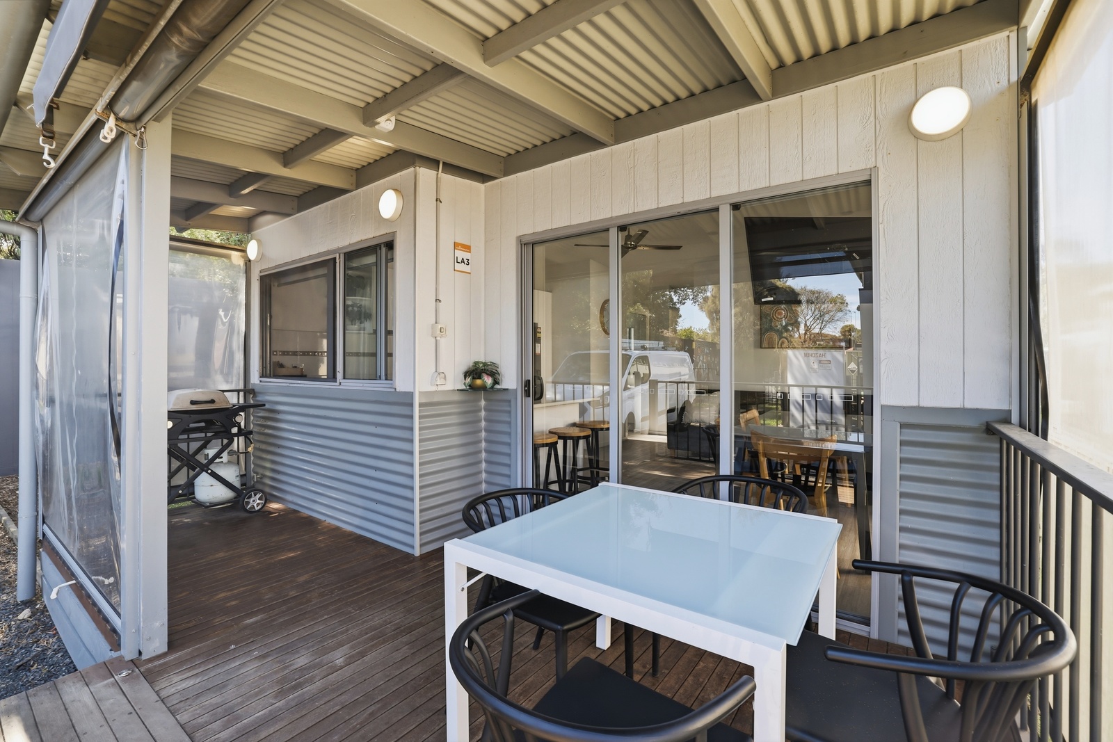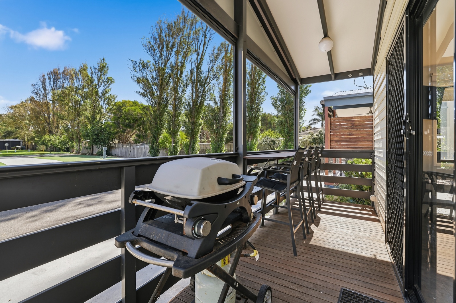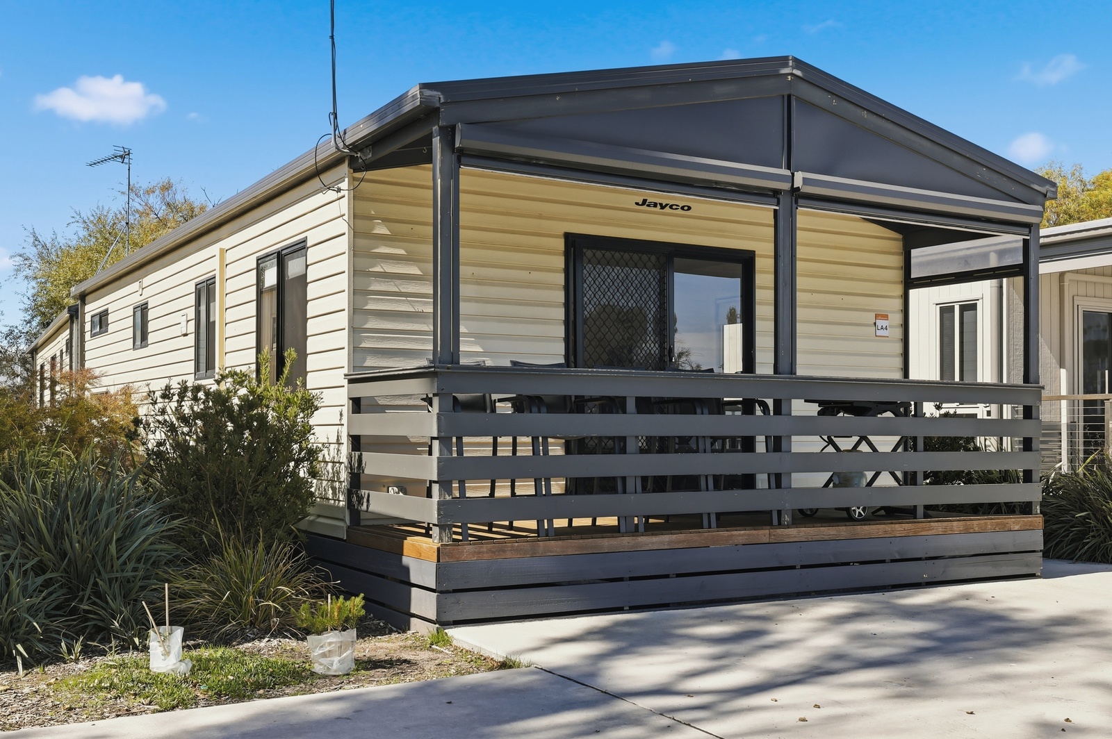 These 3 Bedroom Villas sleep up to seven guests with a queen bed in the main bedroom, a double bed with single upper bunk in the second bedroom and a bunk in the third bedroom, as well as a bathroom, living area, kitchen and private deck with BBQ. Cabin layouts may differ between villas.
