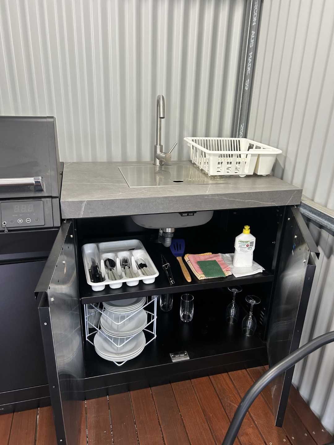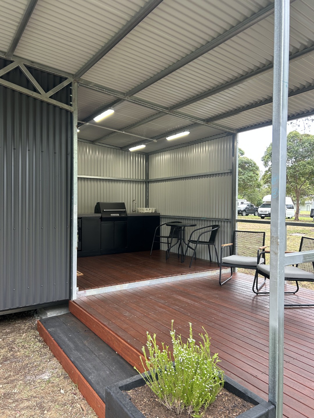 Our Pademelon Cube is sleeping only accommodation. Has external BBQ facilities with fridge, microwave, kettle, toaster and sink.
