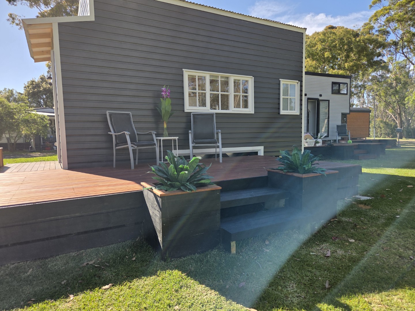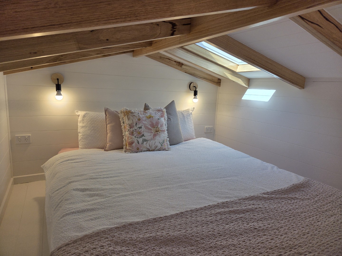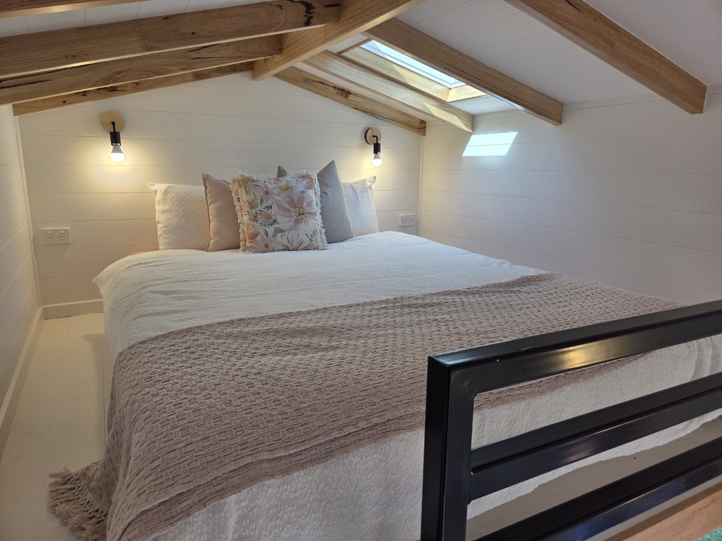 Our Bilby Tiny Home is fully self-contained. It features a loft bed style queen bed on second level and a private ensuite bathroom. The kitchenette includes cooking facilities and coffee-making amenities. A TV and couch are provided. All linen and towels provided.