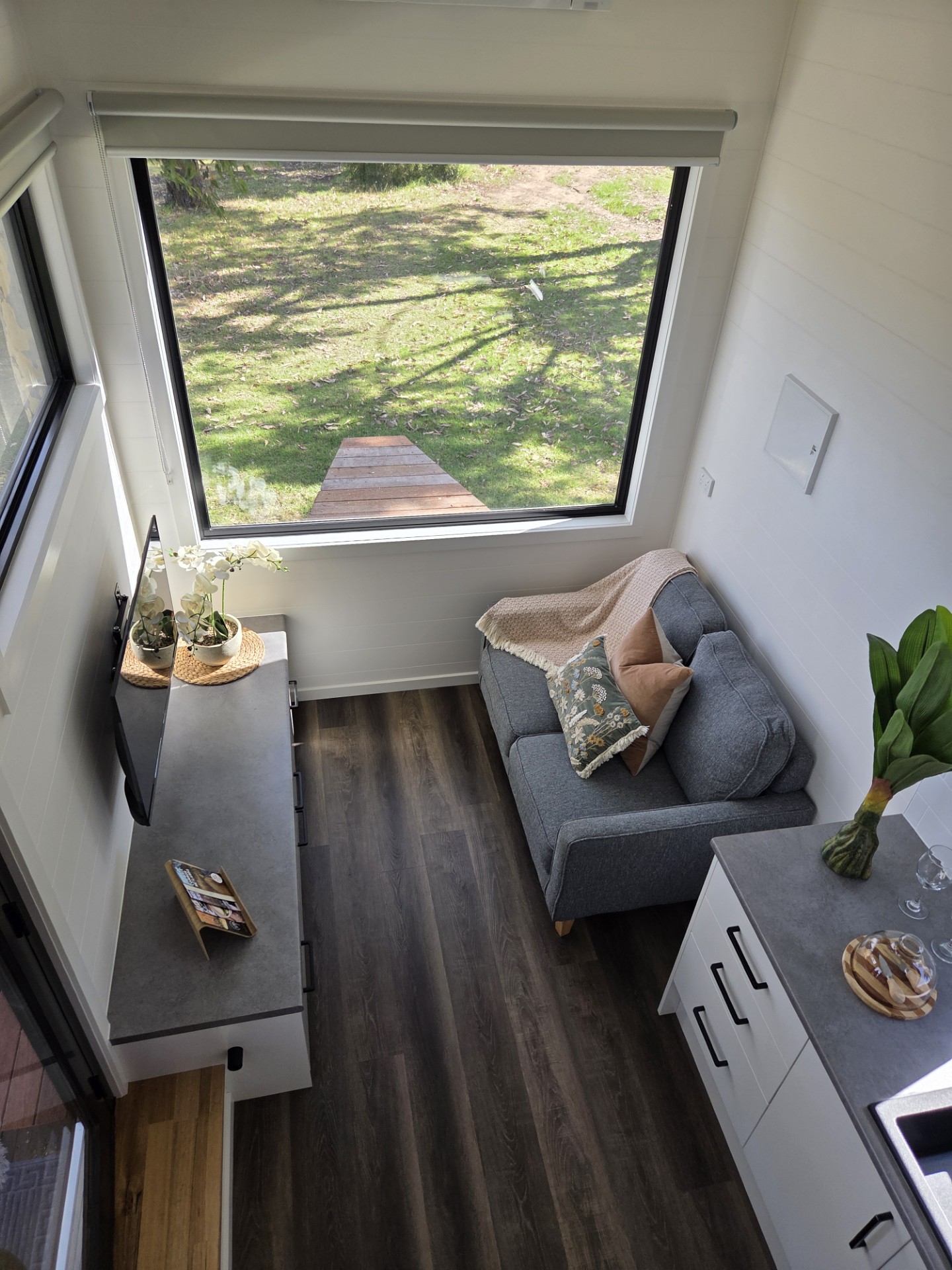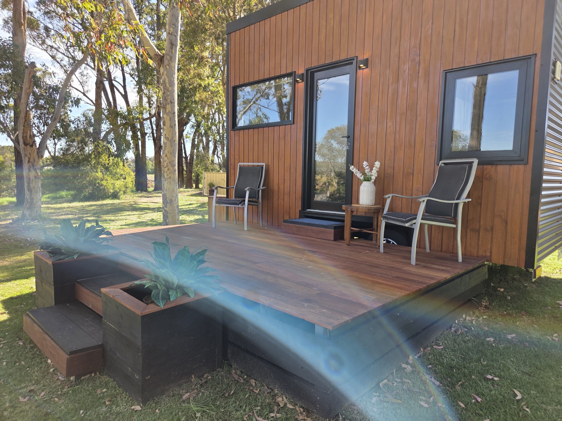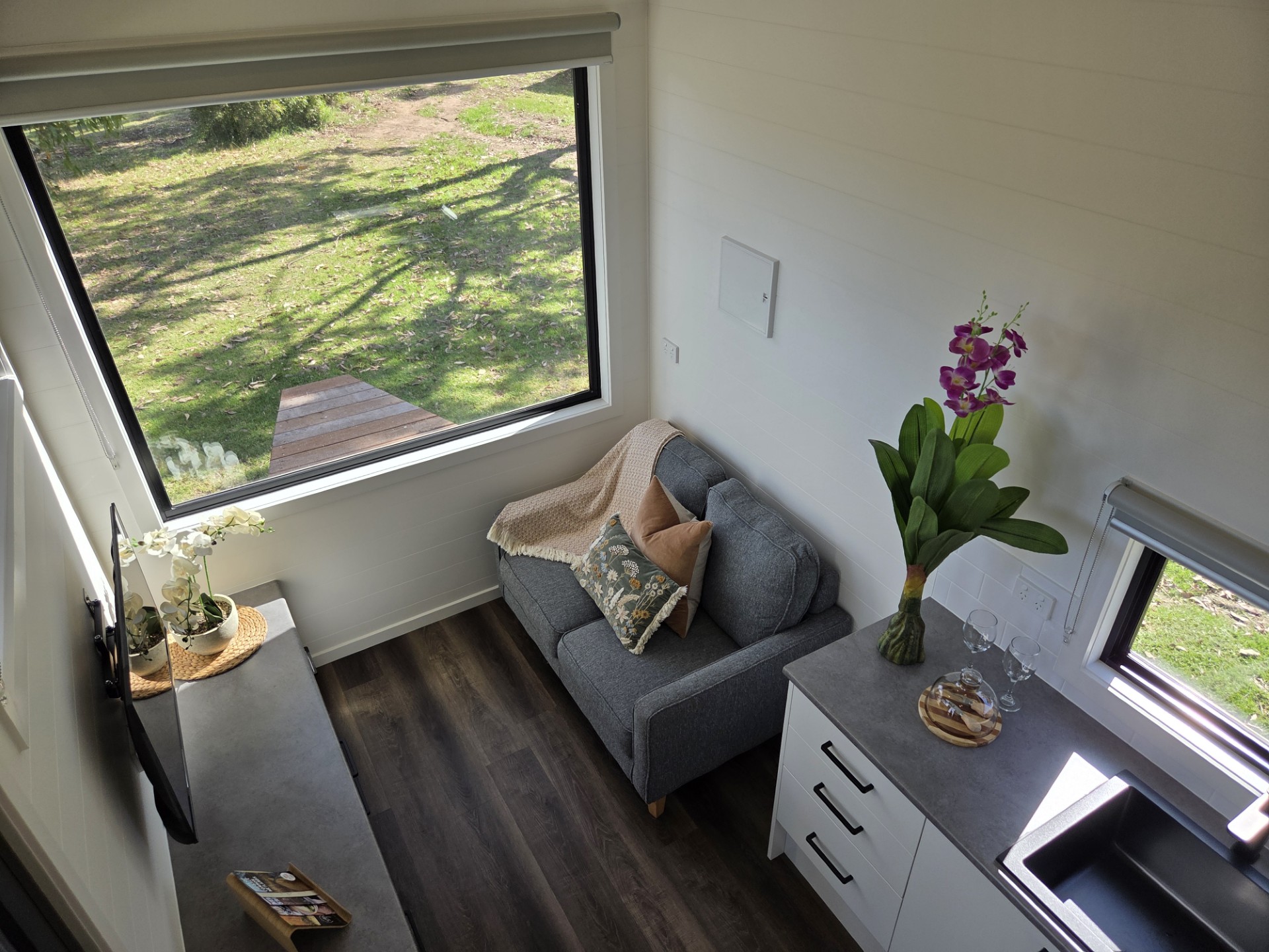 Our Numbat Tiny Home is fully self-contained. It features a Loft style double bed second level accessed via ladder and a private ensuite bathroom. Small kitchenette with coffee-making amenities. A TV and couch are provided. All Linen and towels provided.