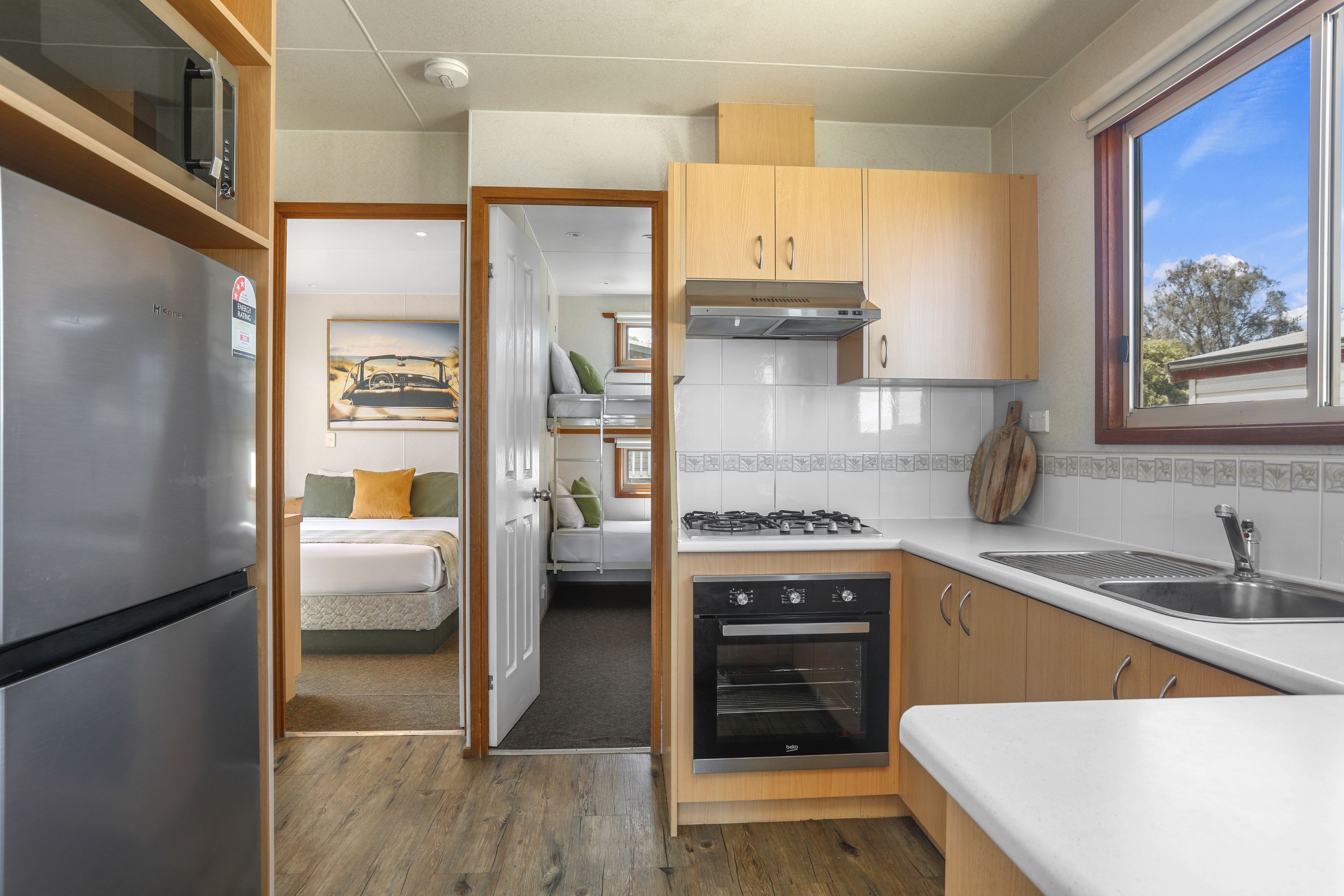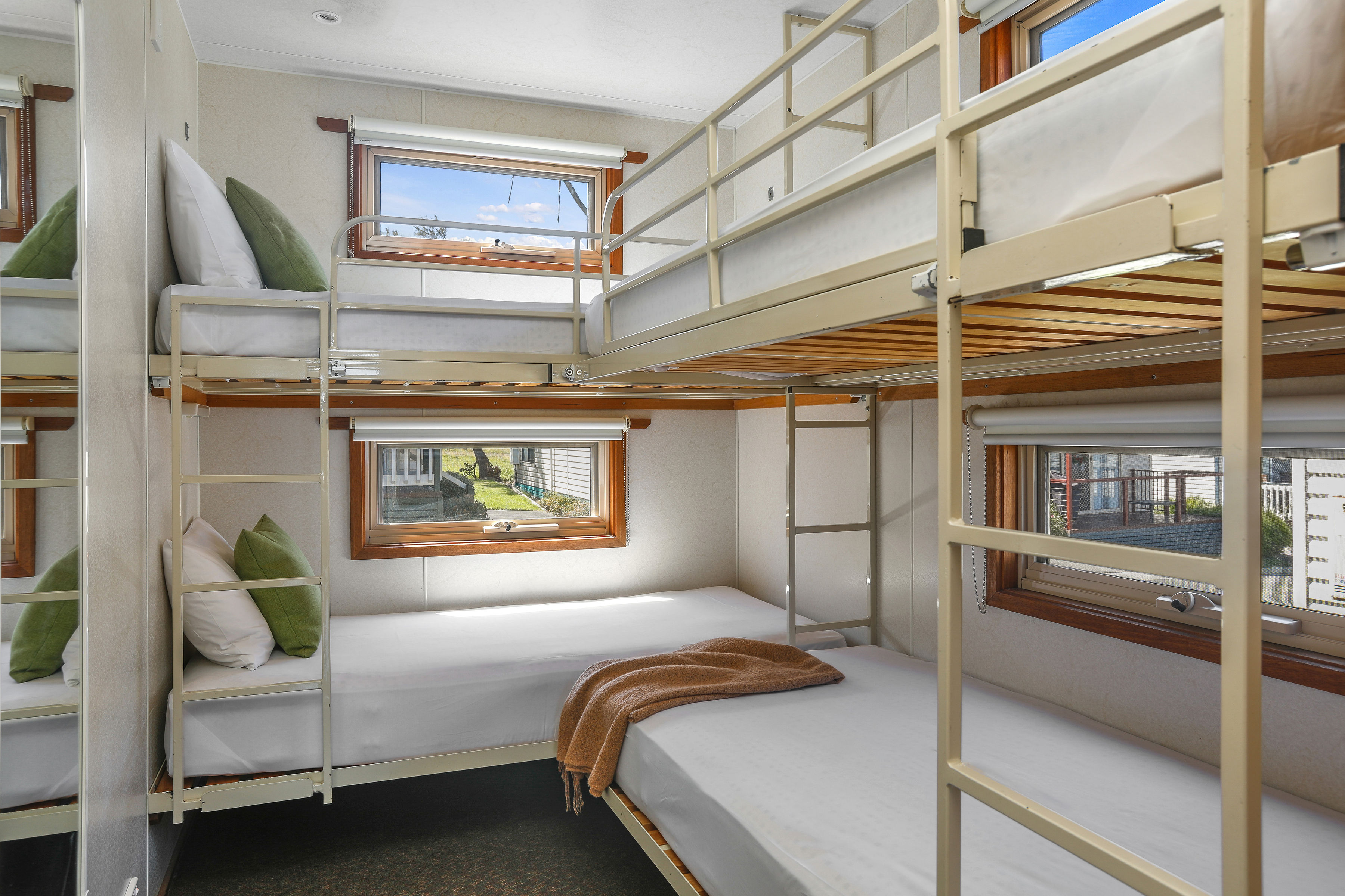 • Australian standards relate to the use of bunk beds and state that “Children under the age of 9 years are not permitted to sleep in the top bunk”, and “Children must not play on the top bunk”. Please take this into consideration when making a booking.
