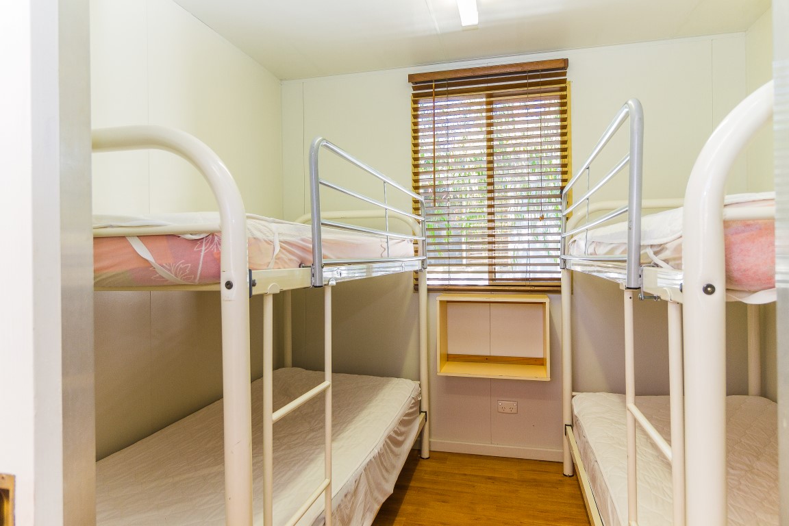- Queen bed and two sets of single bunks