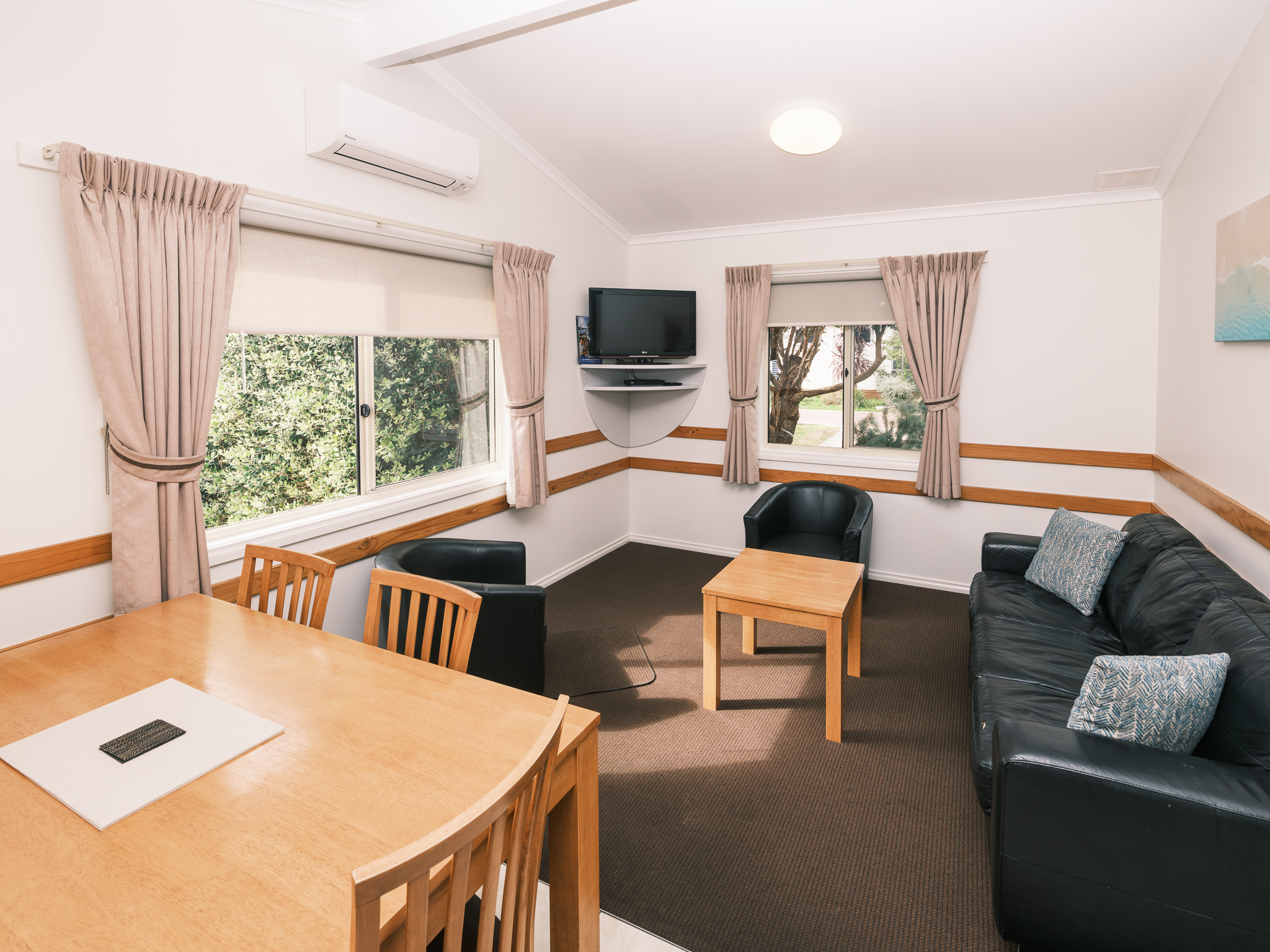 Families love the fully self-contained kitchen with oven, lounge with television and DVD, ceiling fans in the master bedroom and reverse cycle air-conditioning in the living area.