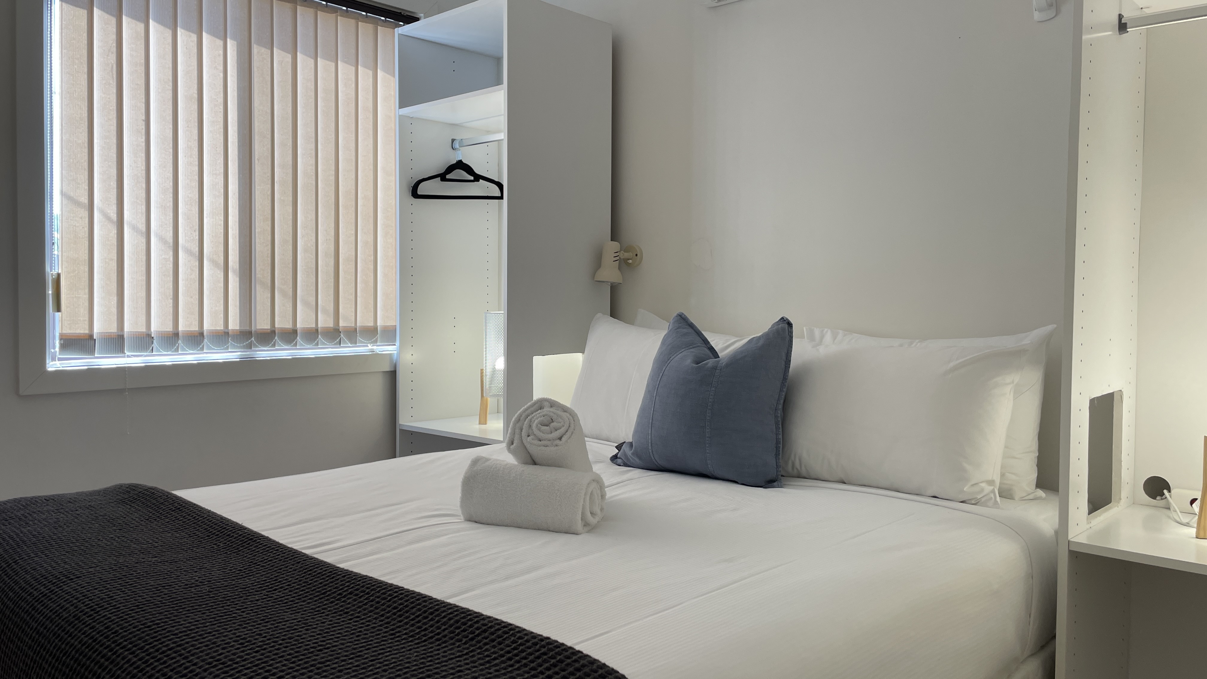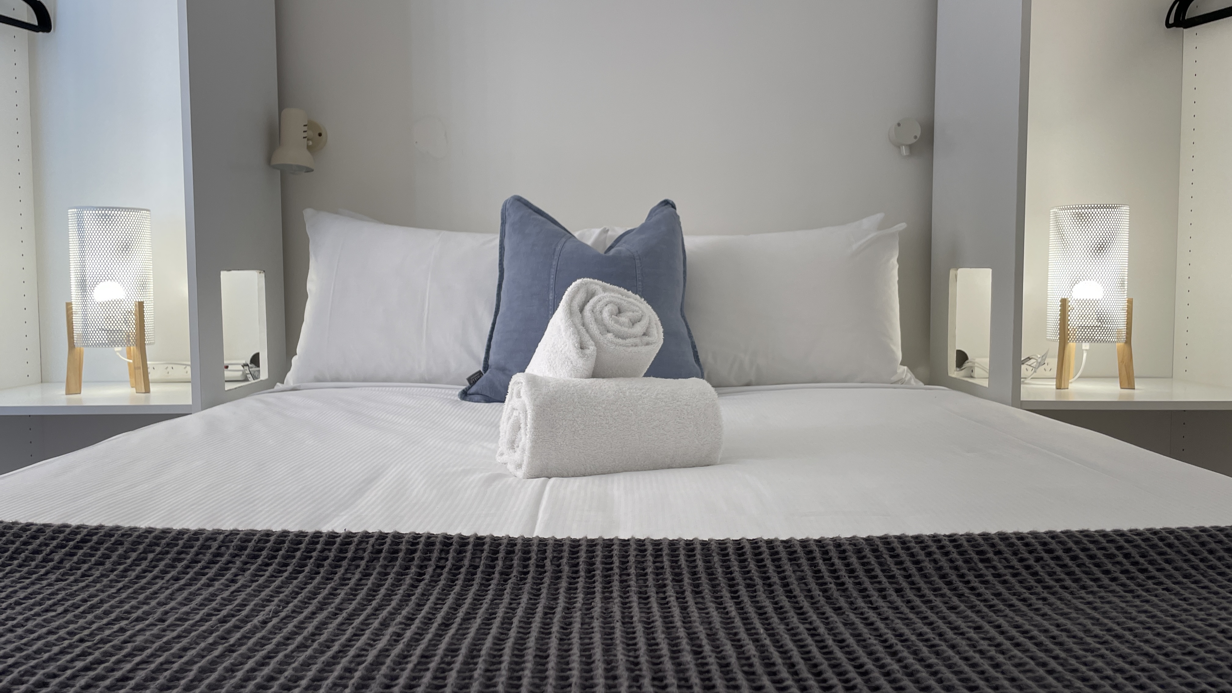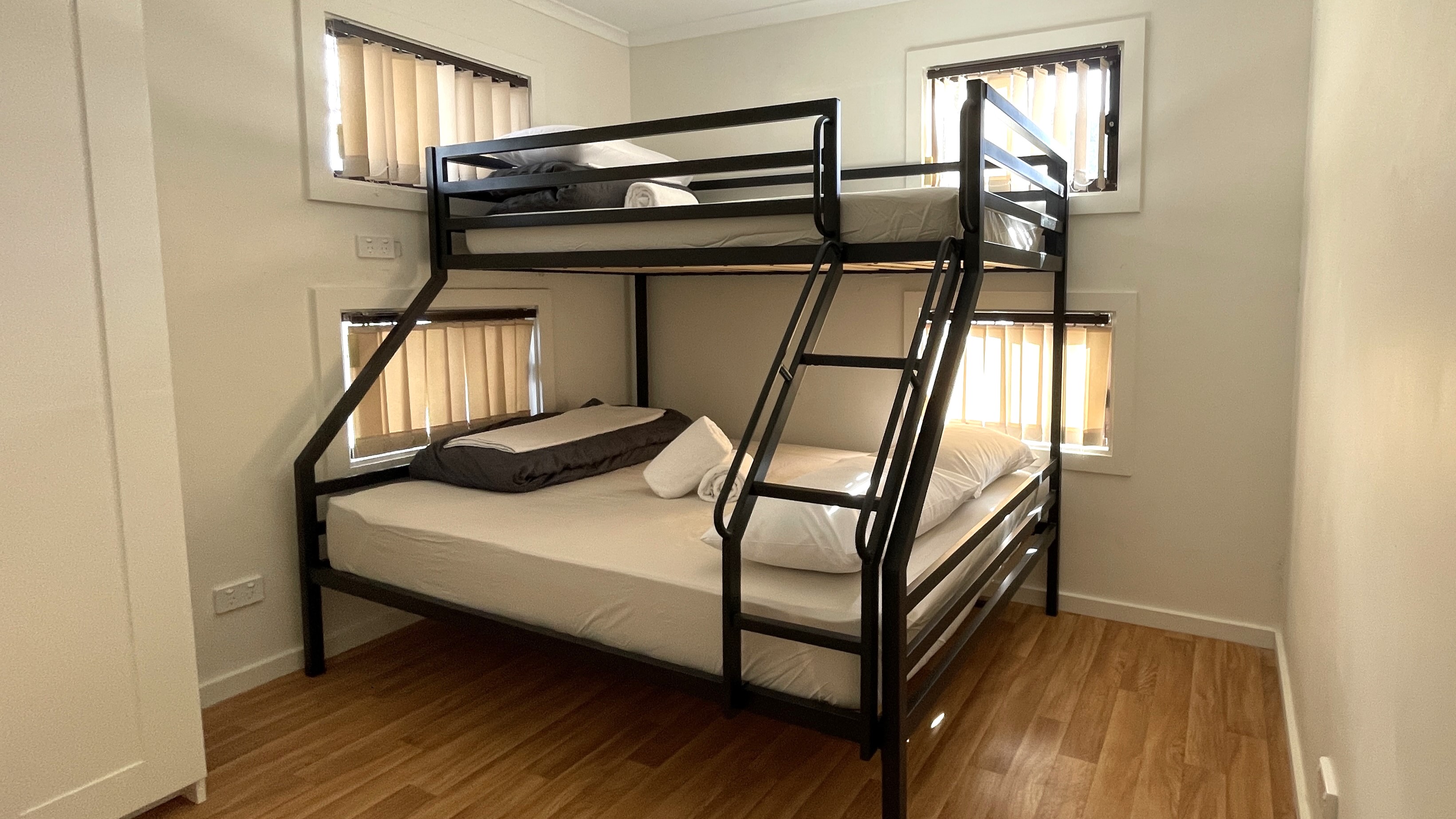 Our standard 2-bedroom cabin provides a roomy stay for guests at Yallingup Beach. Accommodating up to 5 guests, this cabin features a queen-sized bed in the main bedroom and a double/single set of bunk beds in the second bedroom. Perfect for families who like to entertain, this cabin features a full-sized kitchen with fridge, gas oven, and microwave. The lounge area includes a couch, TV, and dining table. Our cabins are non-smoking and pet friendly.