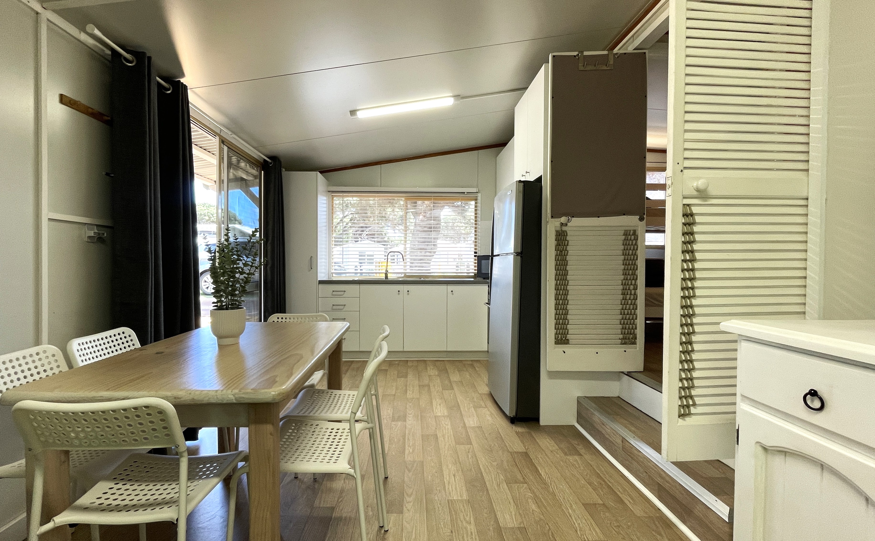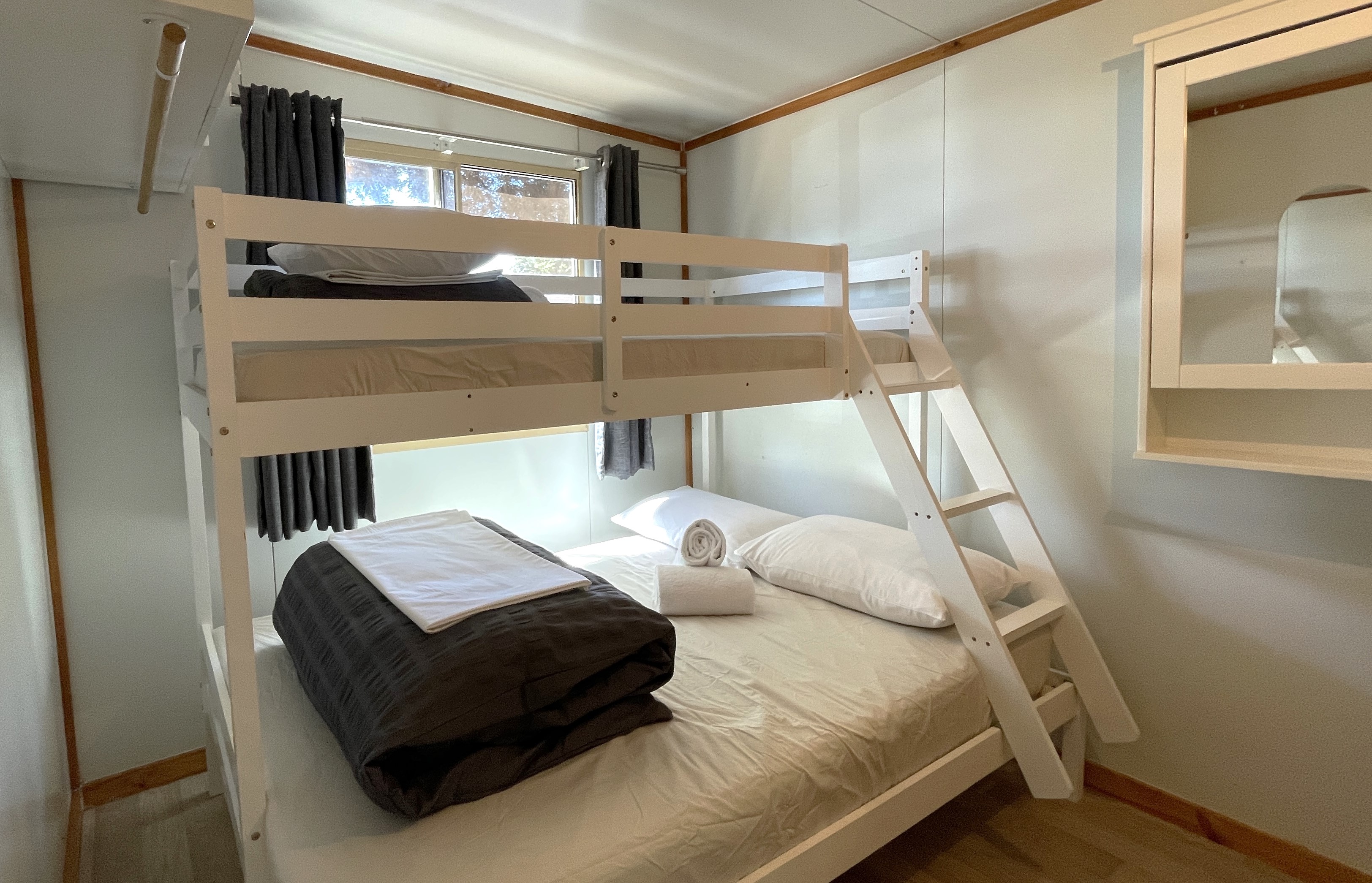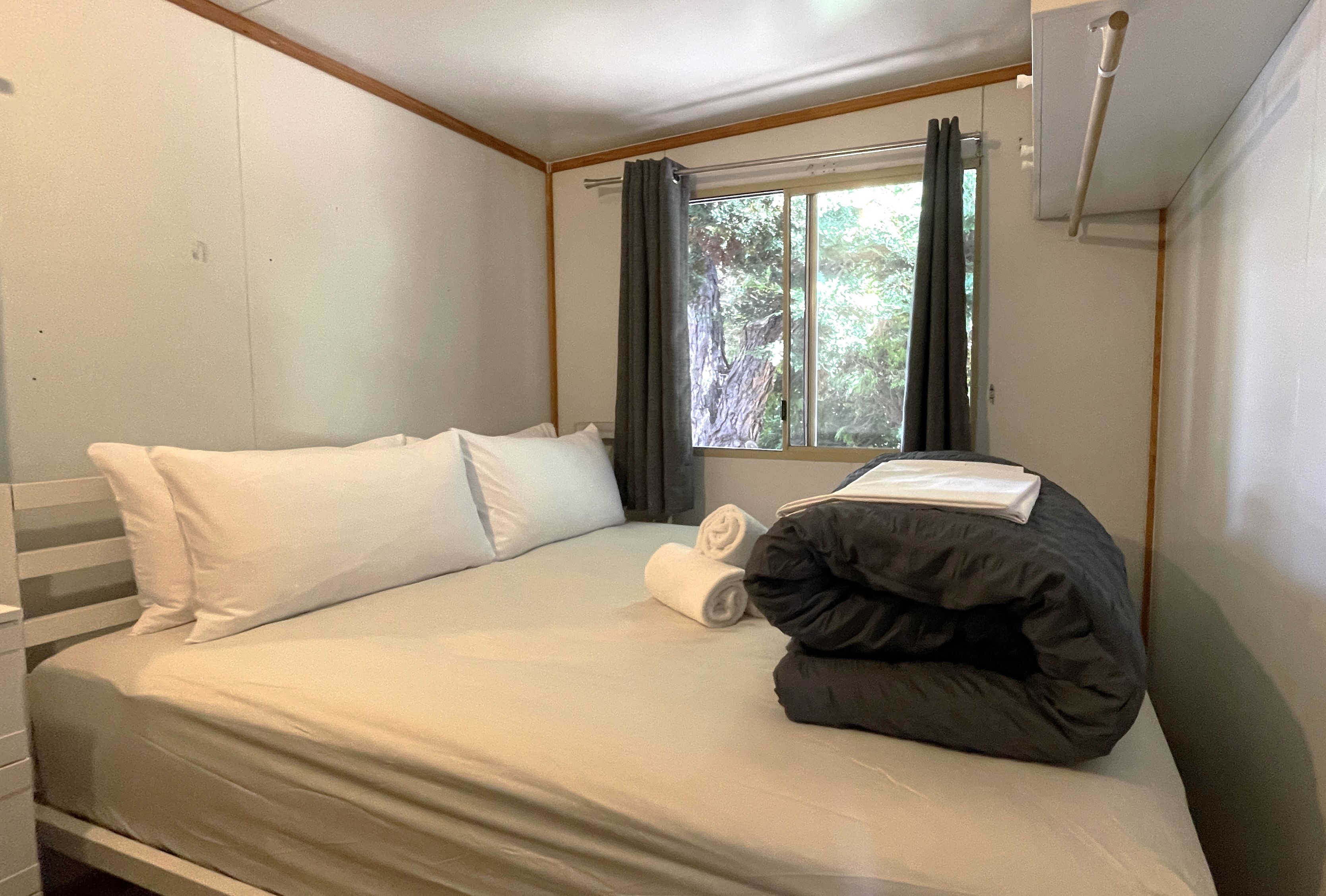 Ideal for the budget-conscious traveller, our Sunset Cabins provide a comfortable and convenient stay at Yallingup Beach without the need for a tent. Accommodating up to 6 guests, these cabins feature a double-sized bed in the main bedroom and 2 sets of single bunk beds in the open-plan living area. Enjoy the convenience of a self-contained kitchen equipped with a microwave, fridge, and gas stovetop.