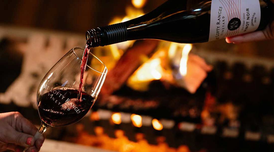 Enjoy a fine red in front of a fire during the cooler months in the south. Credit: South Australian Tourism Commission
