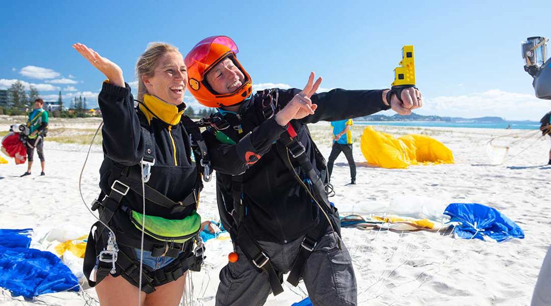 Not loving the cold? Why not skydive onto a beach on the Gold Coast! Credit: Tourism and Events QLD