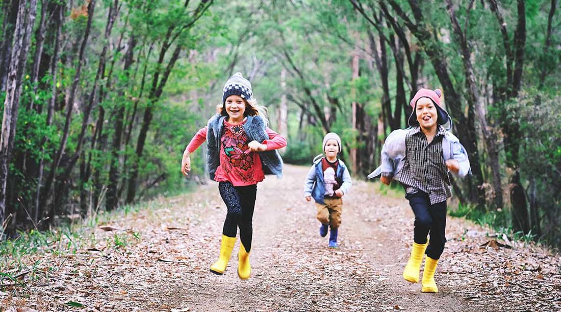The cold weather doesn't seem to deter these children from playing outside at the Margaret River Trail. Credit: Tourism Western Australia