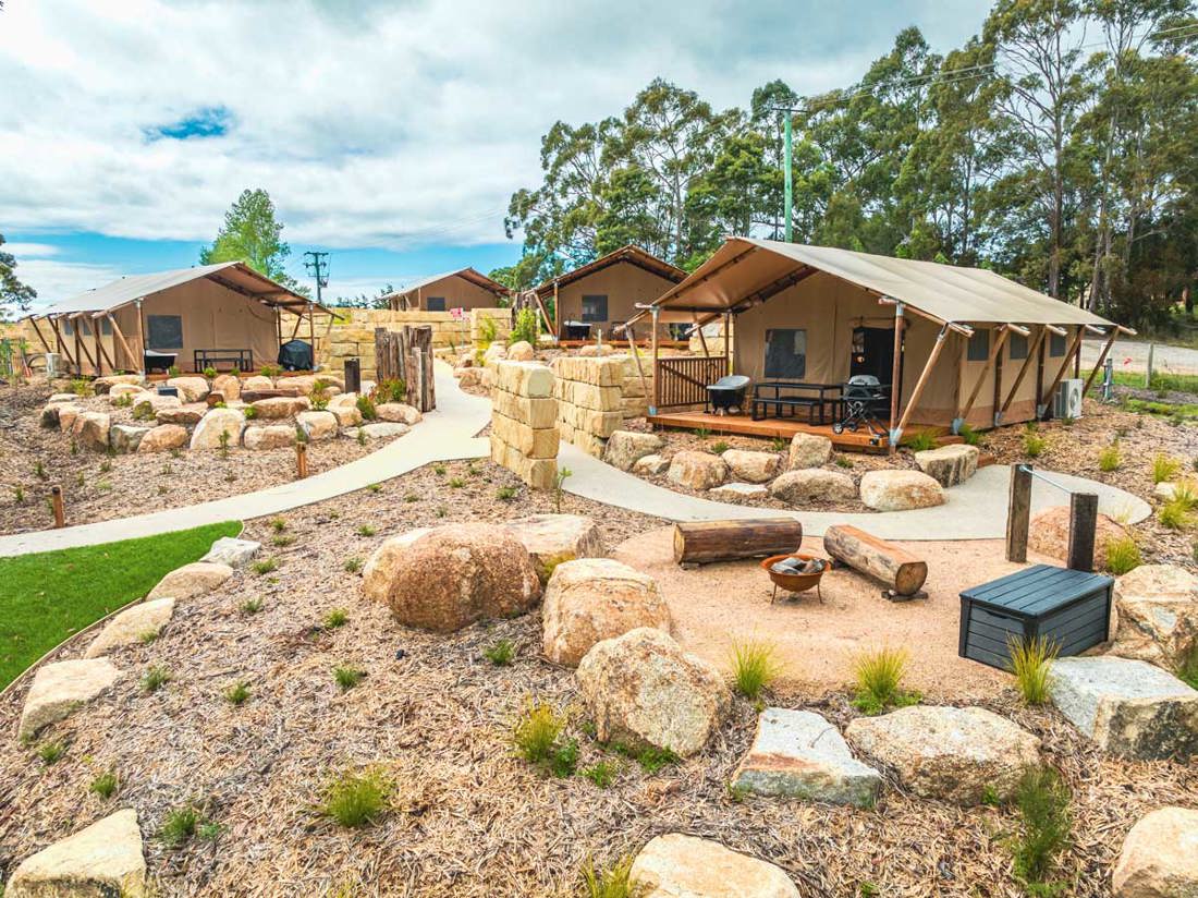 In winter, your travel dollars can often stretch further, like a glamping tent at BIG4 St Helens.