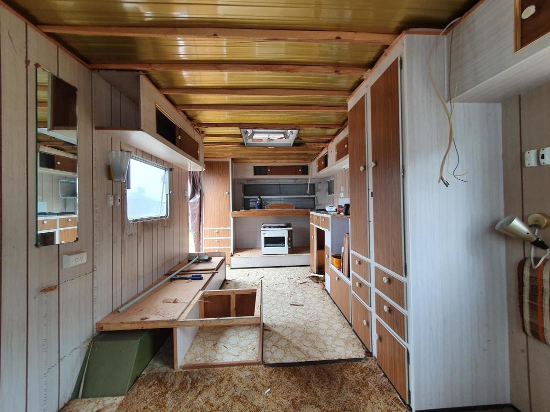 - Try to find a caravan with ‘good bones’ and minimal water damage.