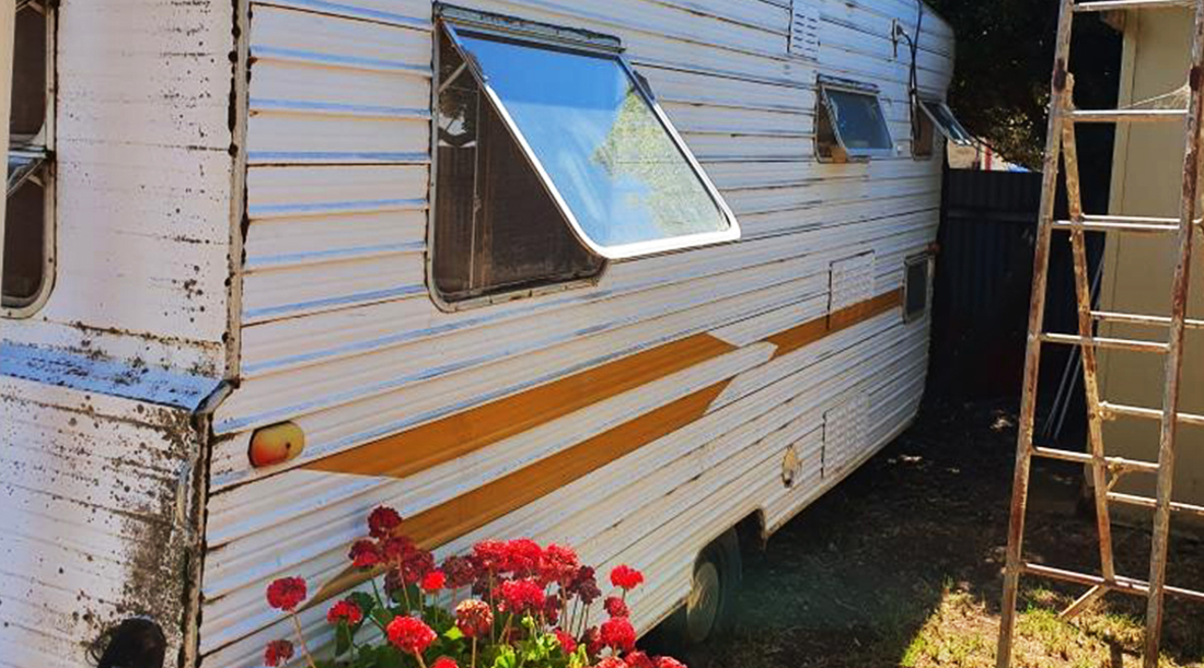 We definitely weren’t looking to renovate a caravan. It wasn’t even something we ever spoke about. But when we saw it, we thought it might be a good time to try a renovation project before eventually buying and renovating an old home.