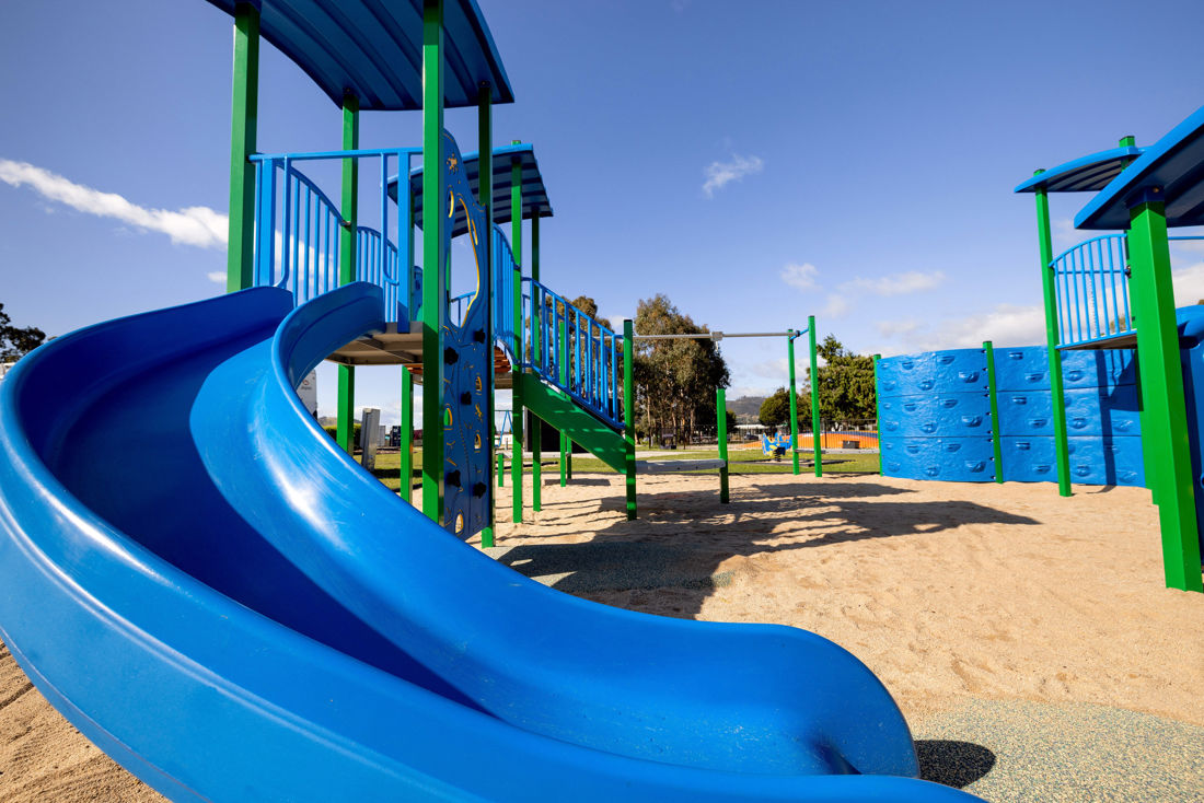 A new playground and neighbouring Jumping Pillow enhance the family-friendly vibe of this relaxed Hobart holiday park.